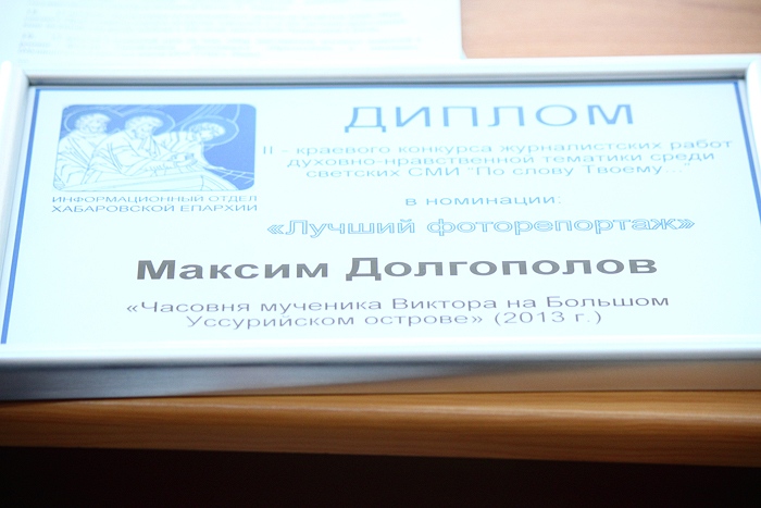 Награждение победителей конкурса среди журналистов светских СМИ Хабаровского края «По слову Твоему». 19 декабря 2013г.