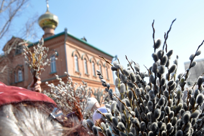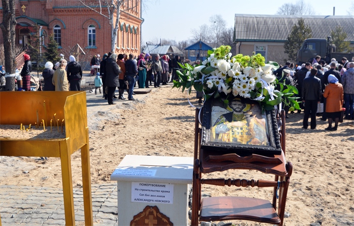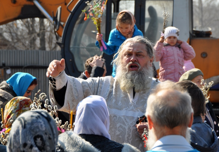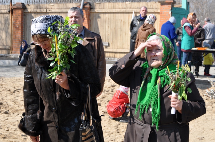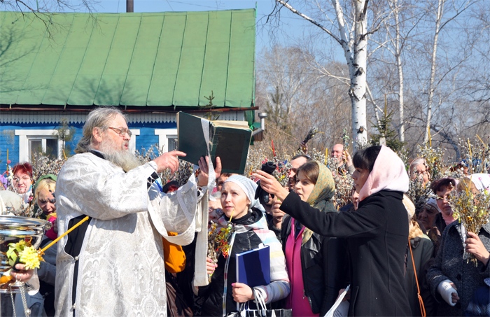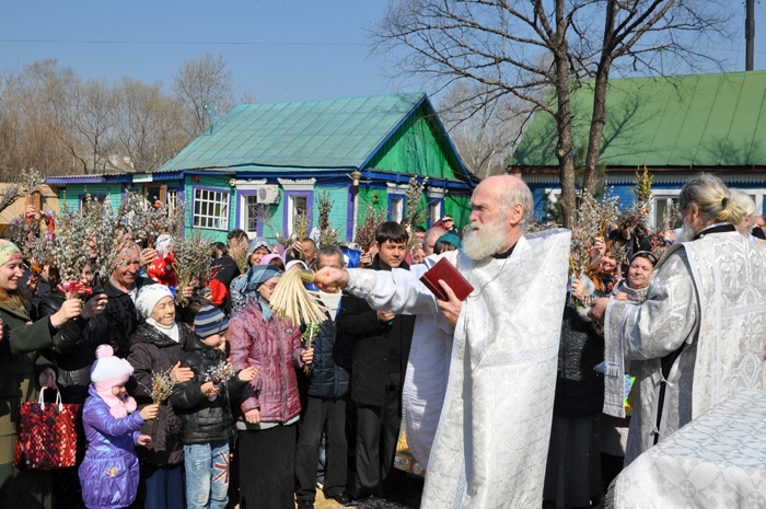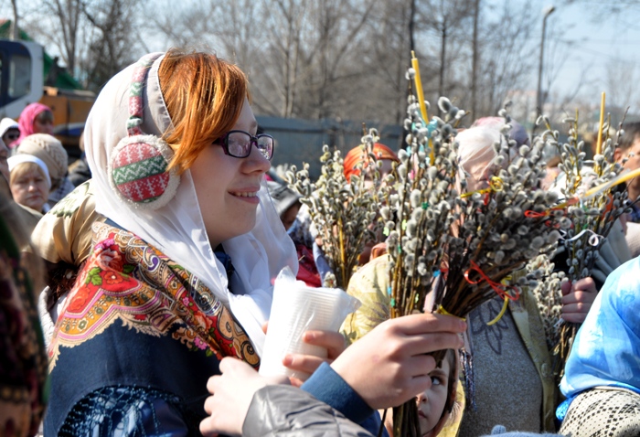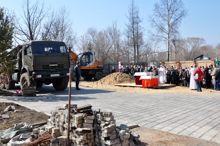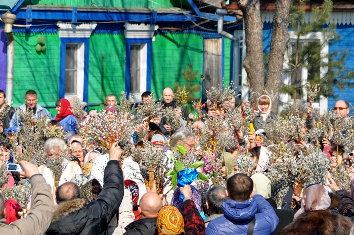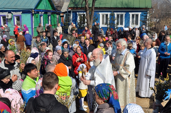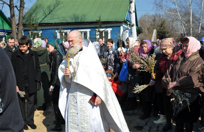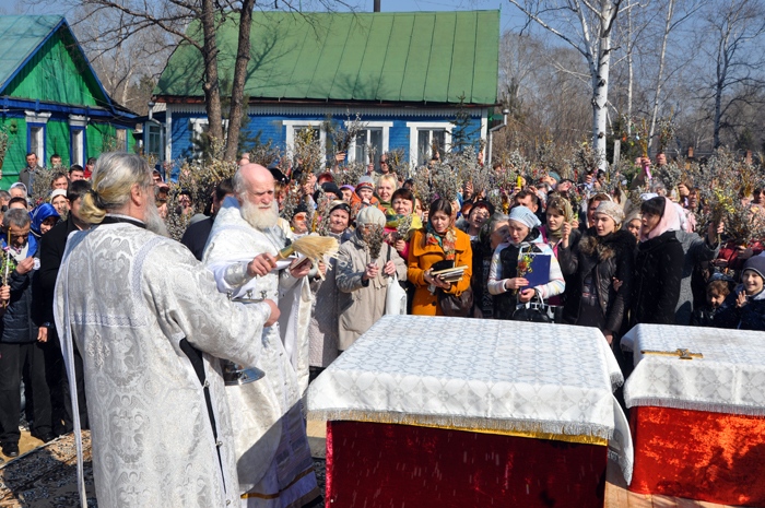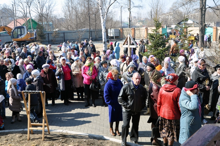 Вербное воскресенье на месте сгоревшего храма св. благоверного князя Александра Невского в Хабаровске. 13 апреля 2014 г.