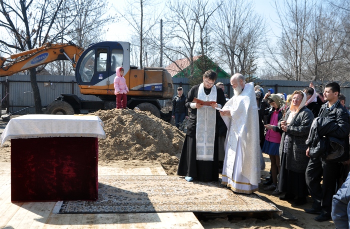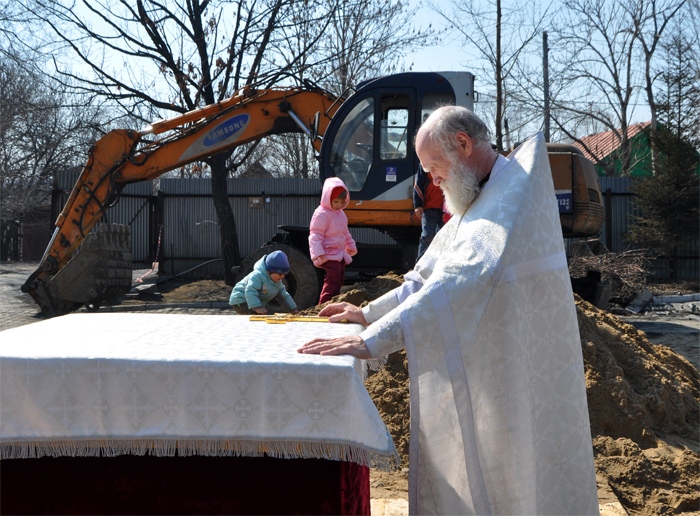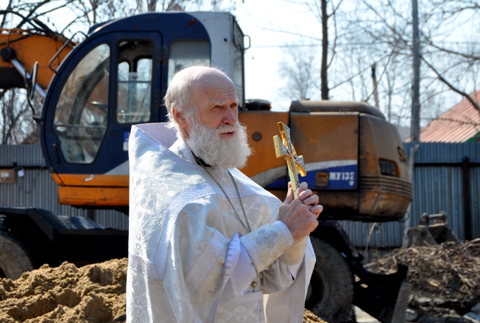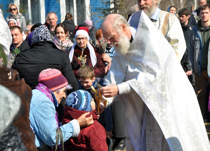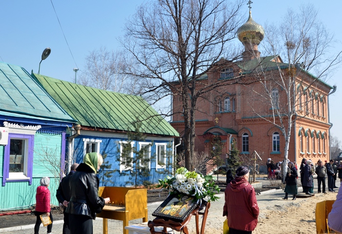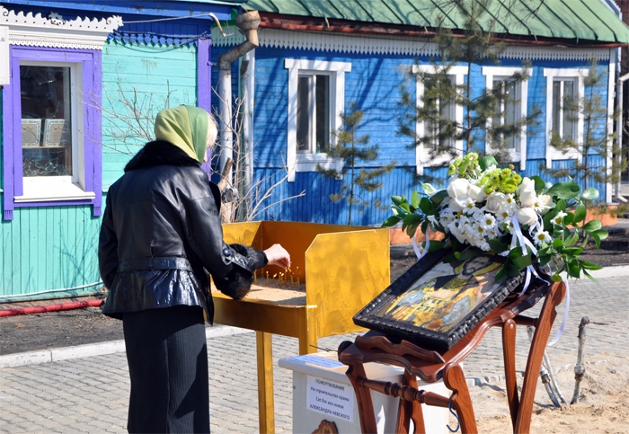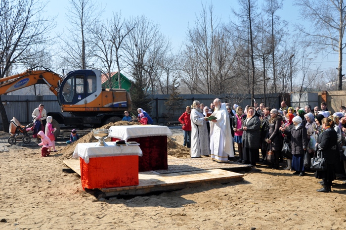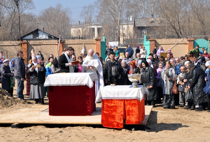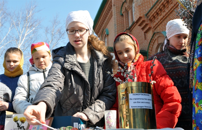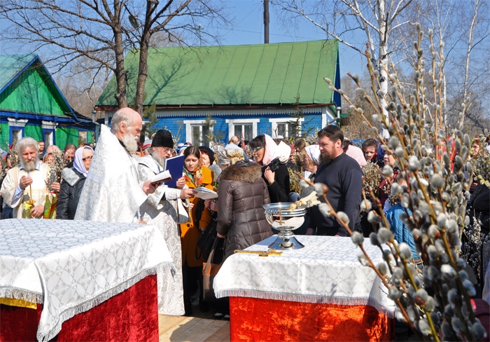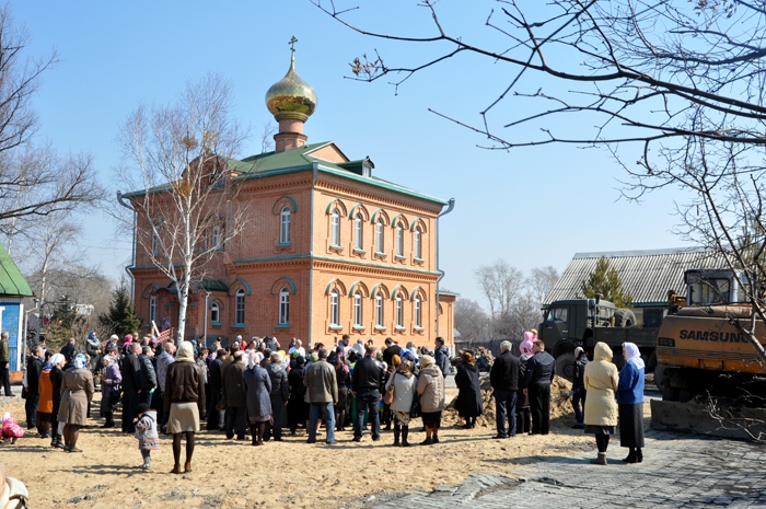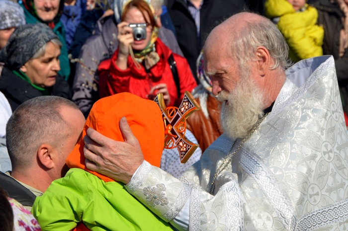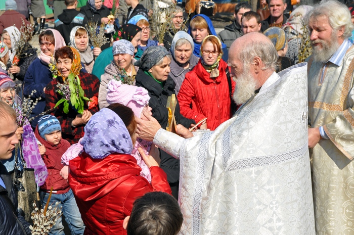 Вербное воскресенье на месте сгоревшего храма св. благоверного князя Александра Невского в Хабаровске. 13 апреля 2014 г.