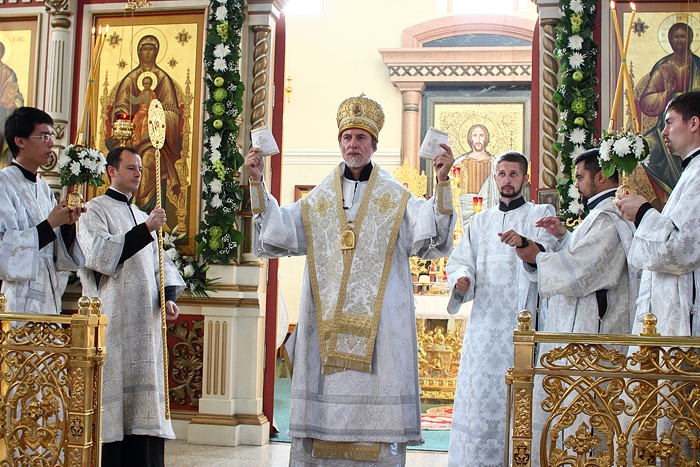 Хиротония в иереи диакона Владимира Зубкова и в диаконы Николая Столбикова. Праздник Преображения Господня, Спасо-Преображенский кафедральный собор. 19 августа 2014 года
