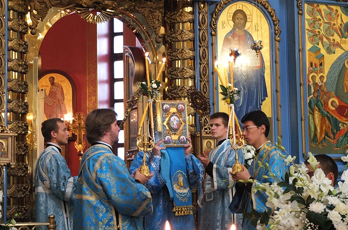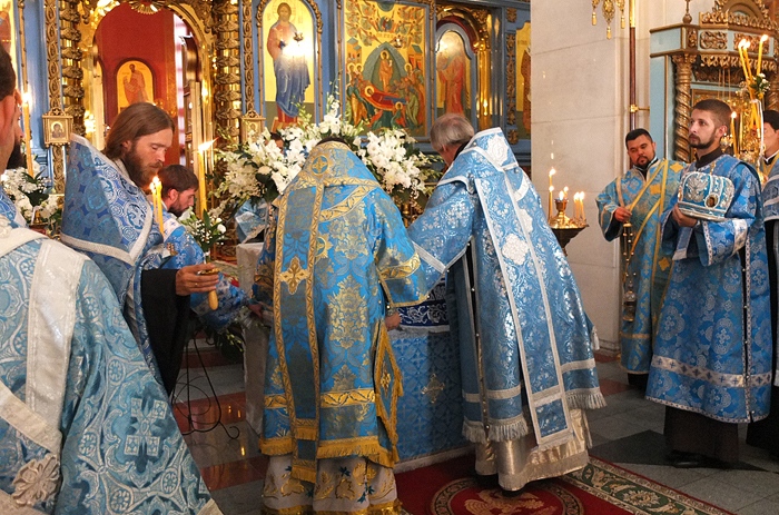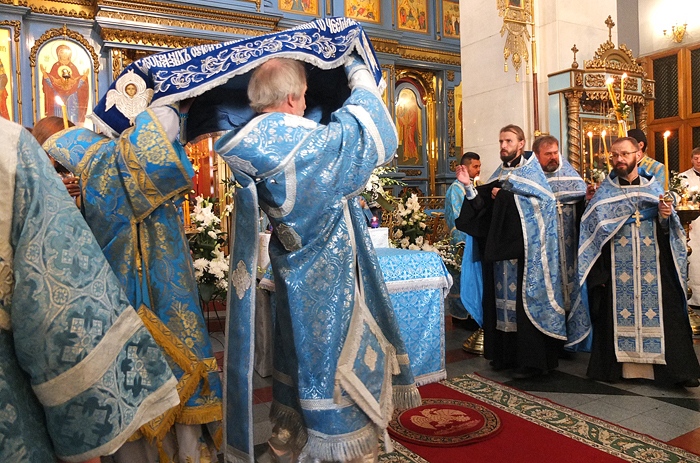 Митрополит Хабаровский и Приамурский Игнатий возглавил Всенощное бдение в Градо-Хабаровском соборе Успения Божией Матери. 27 августа 2014 г. Успение Божией Матери.