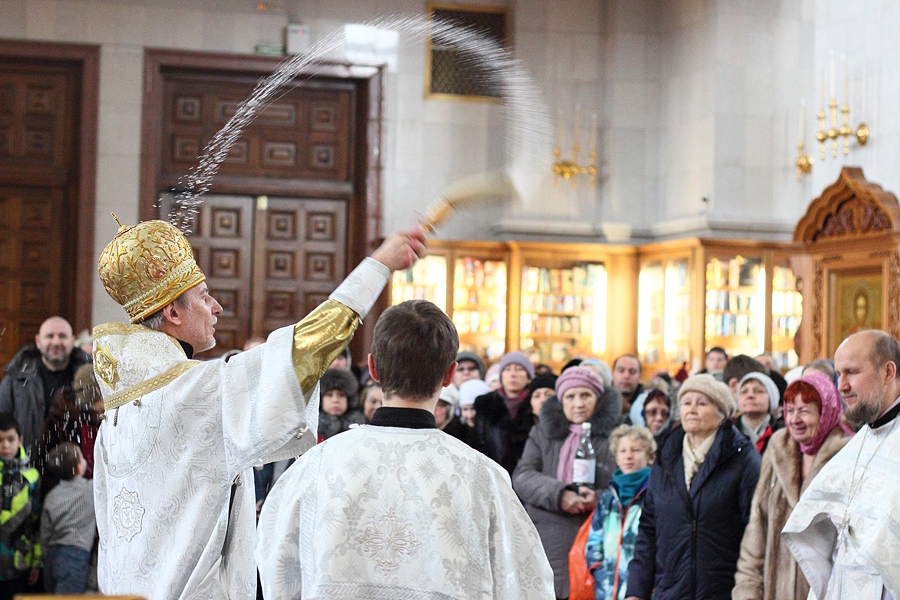 Праздничное богослужение в день Богоявление в Спасо-Преображенском кафедральном соборе. 19 января 2016 г.