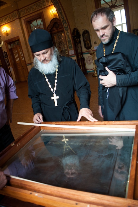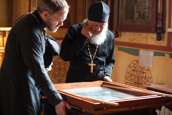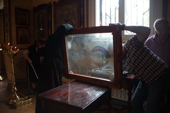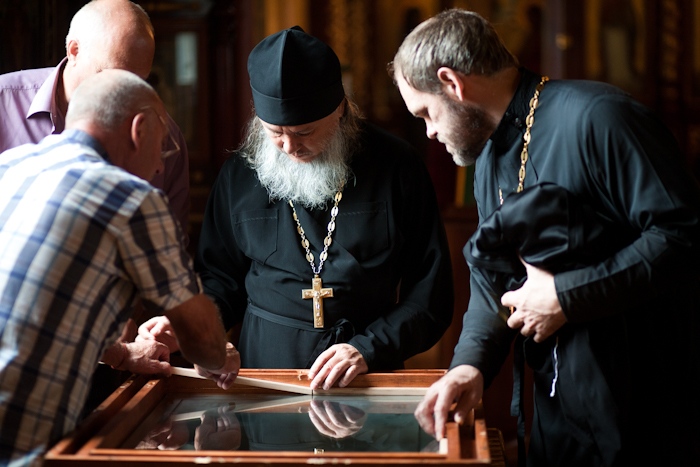 Новый киот у иконы Богородицы «Неупиваемая Чаша». Христорождественский собор г. Хабаровска. 13 июля 2016 года