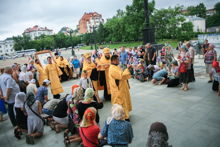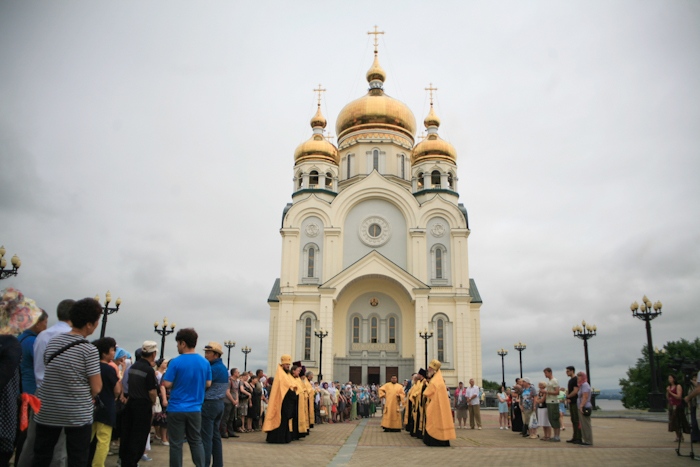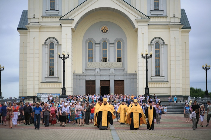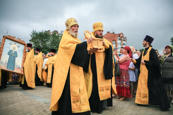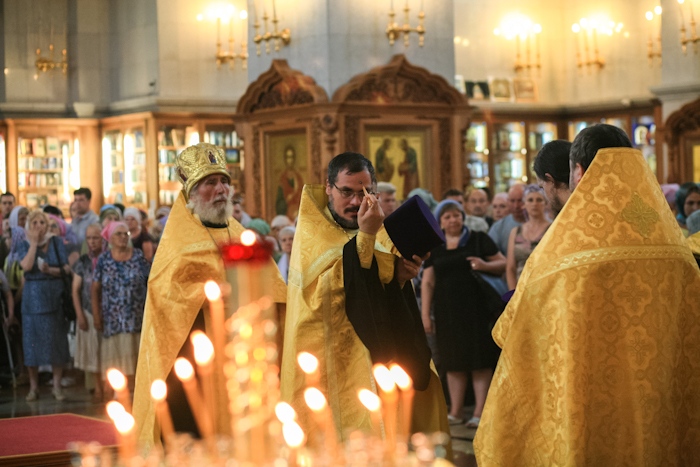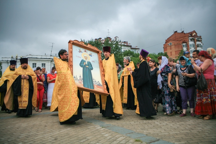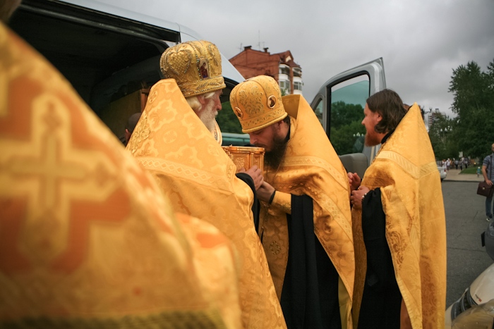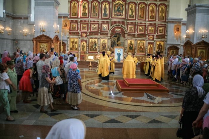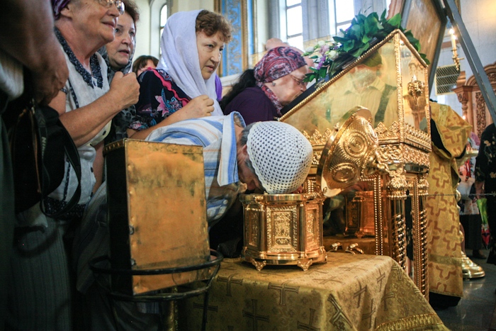 Ковчег с частицей мощей блаженной Матроны Московской. Спасо-Преображенский кафедральный собор. 13 июля 2016 года