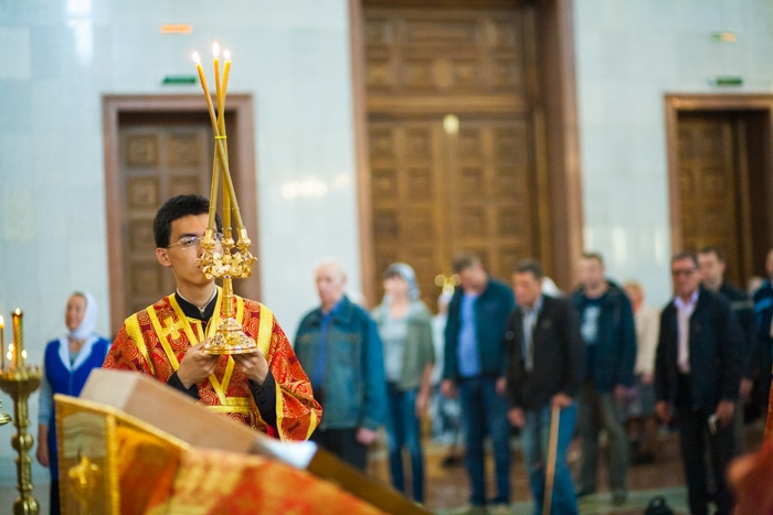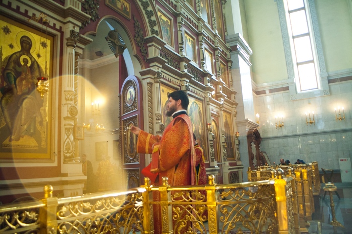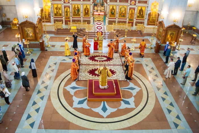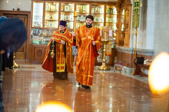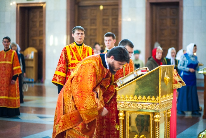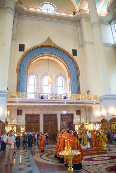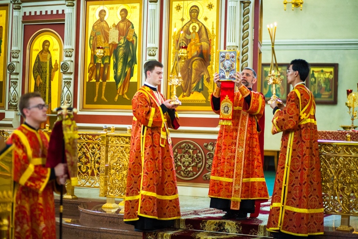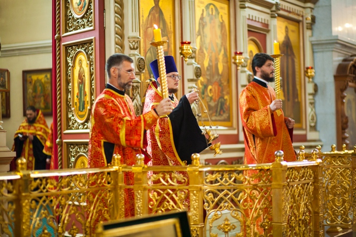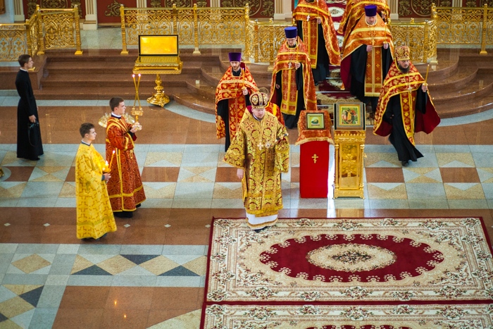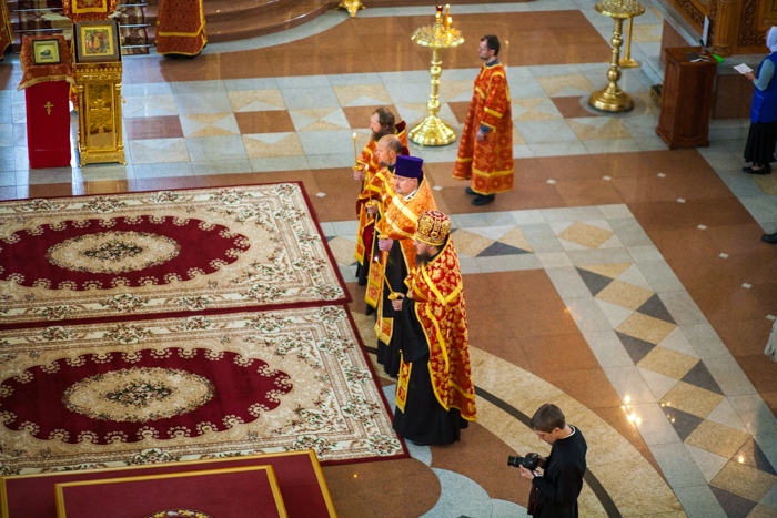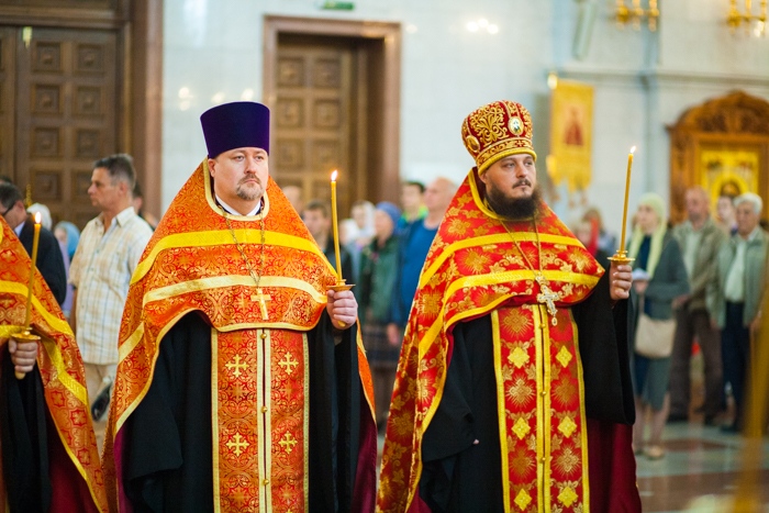 Всенощное бдение накануне дня Усекновения главы Пророка, Предтечи и Крестителя Господня Иоанна в Спасо-Преображенском кафедральном соборе Хабаровска. 10 сентября 2016 года