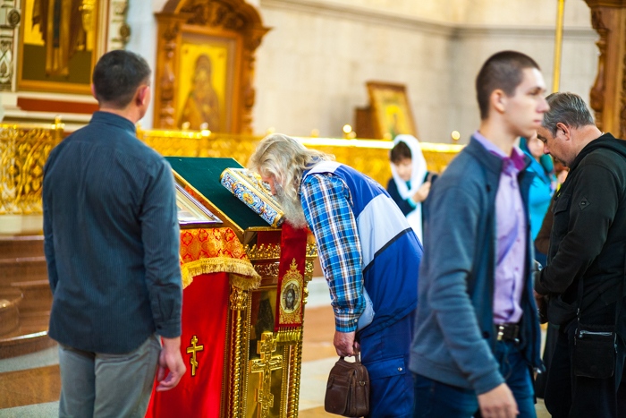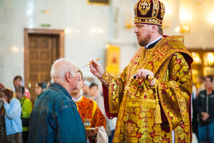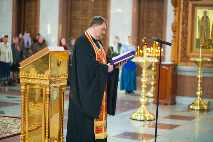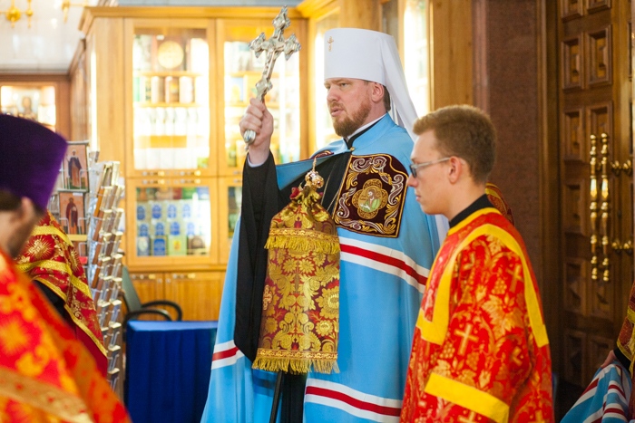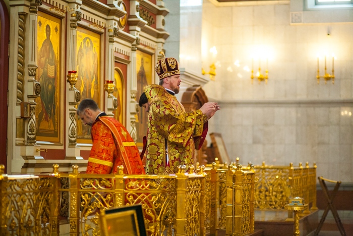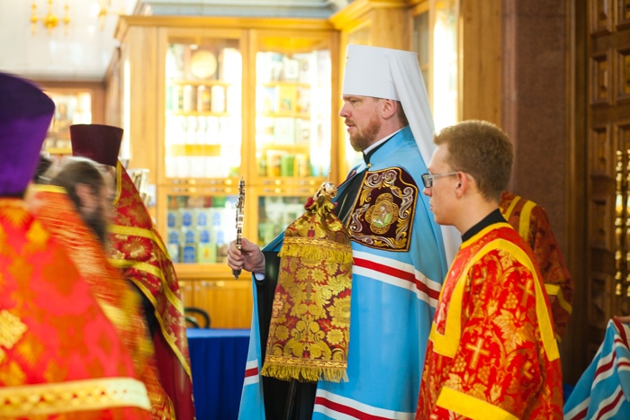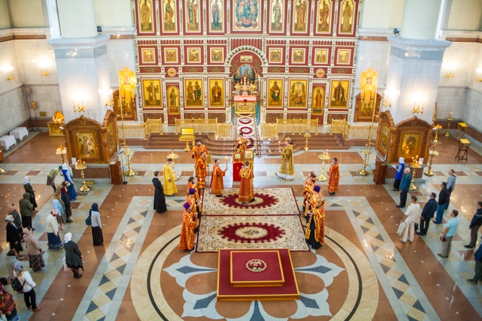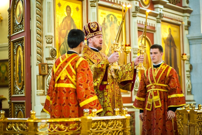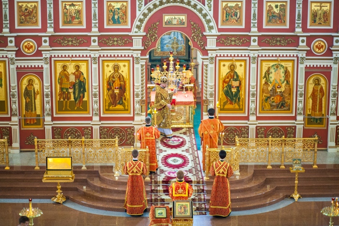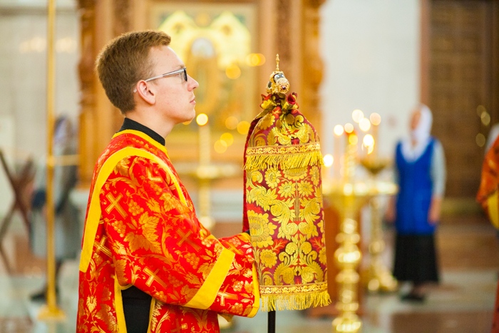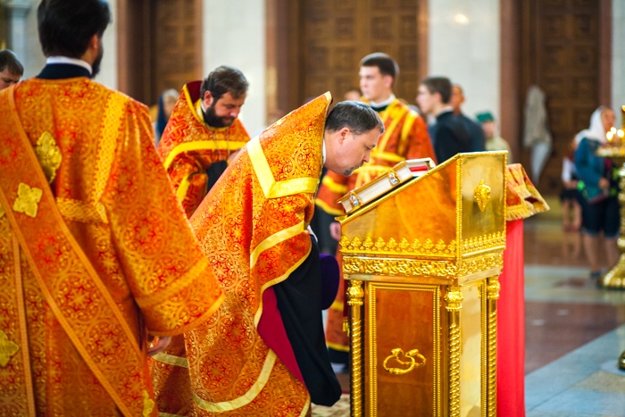 Всенощное бдение накануне дня Усекновения главы Пророка, Предтечи и Крестителя Господня Иоанна в Спасо-Преображенском кафедральном соборе Хабаровска. 10 сентября 2016 года