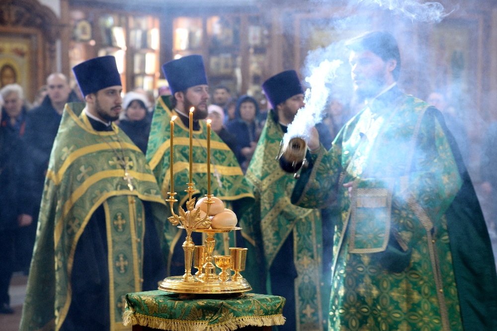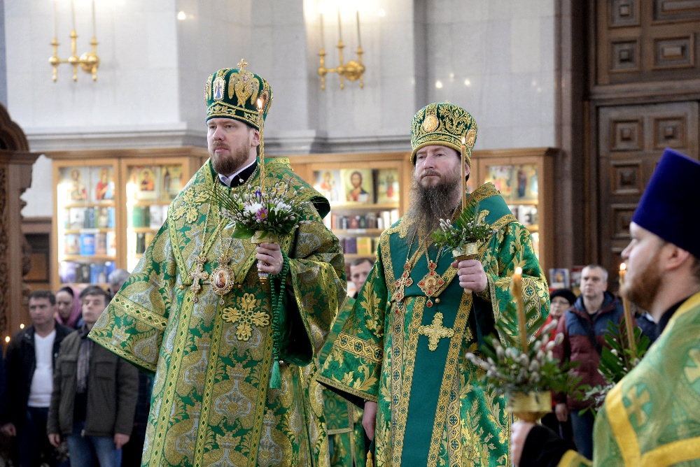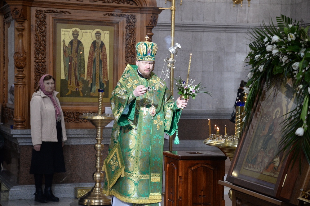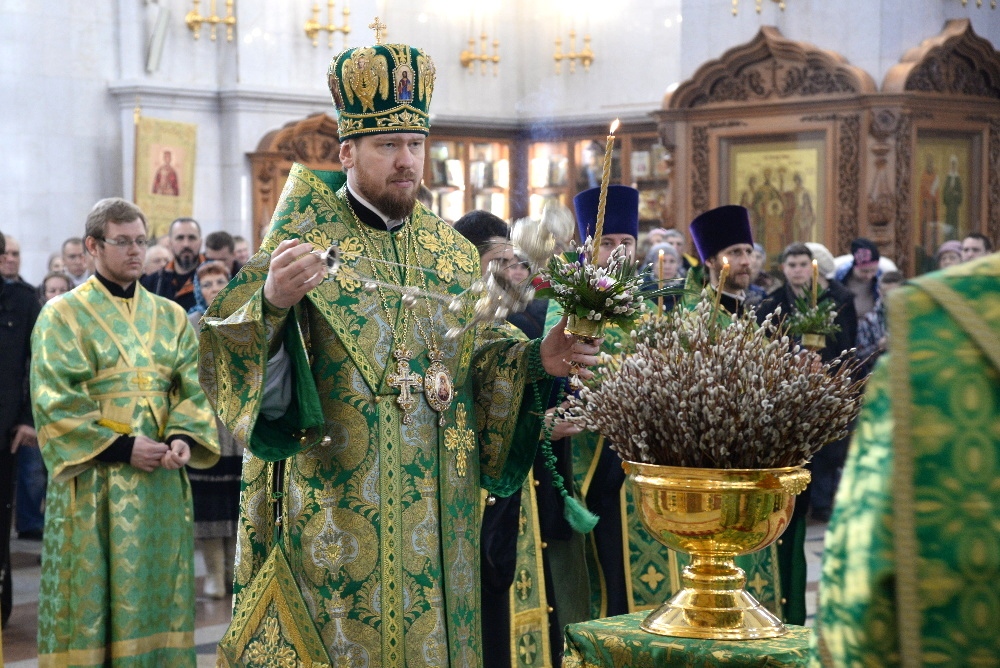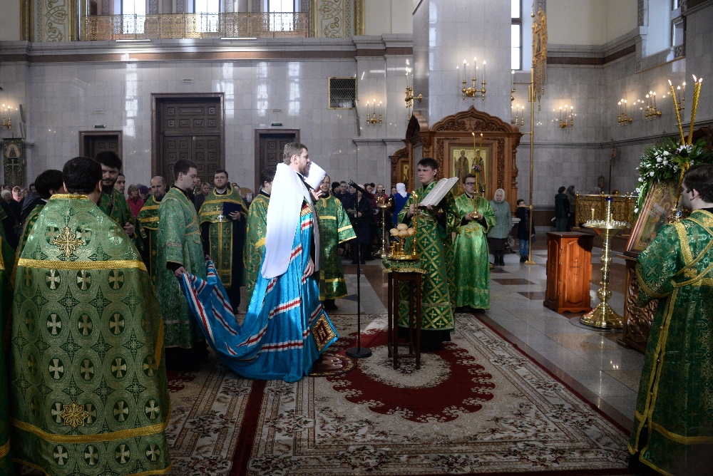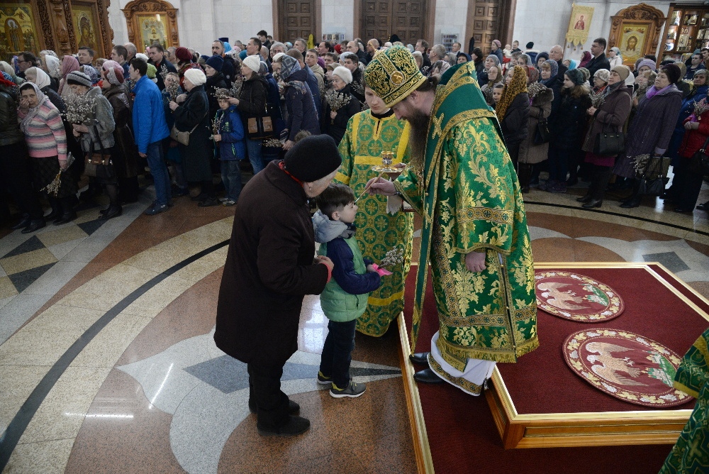 Всенощное бдение в канун праздника Входа Господня в Иерусалим в Спасо-Преображенском кафедральном соборе 31 марта 2018 г.