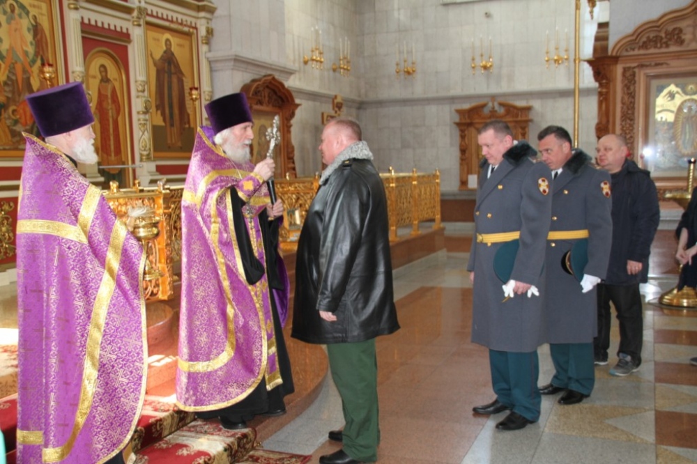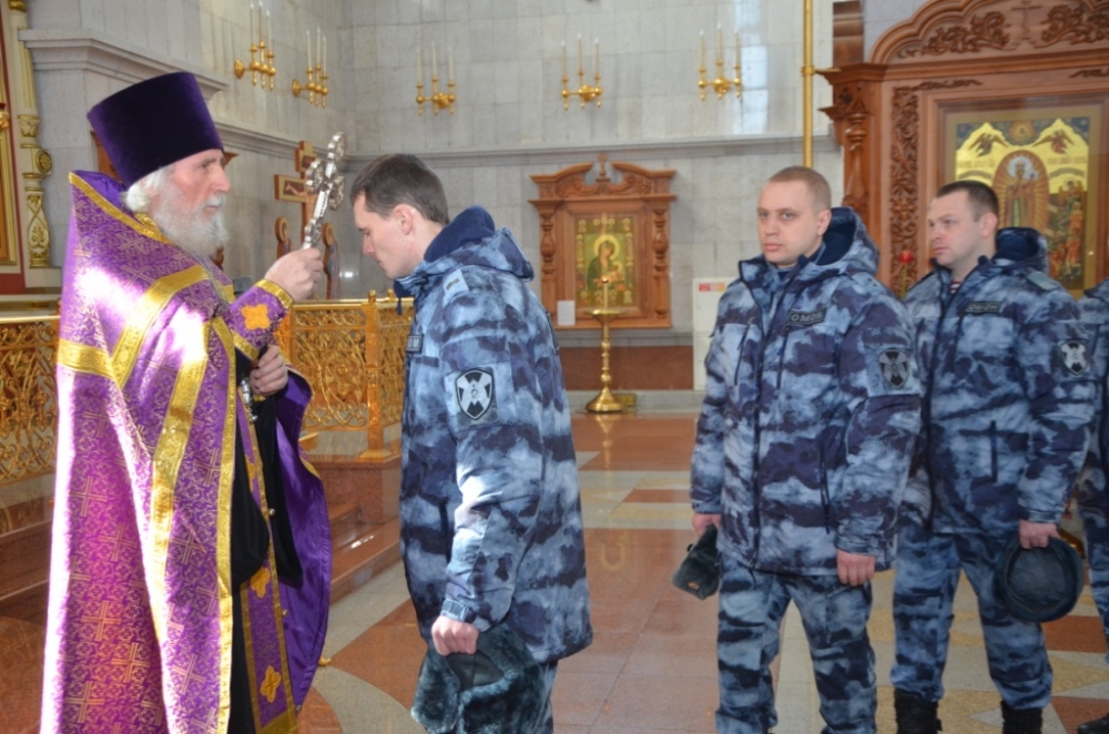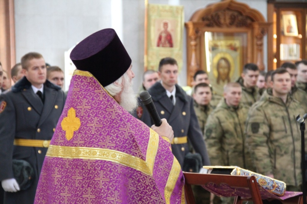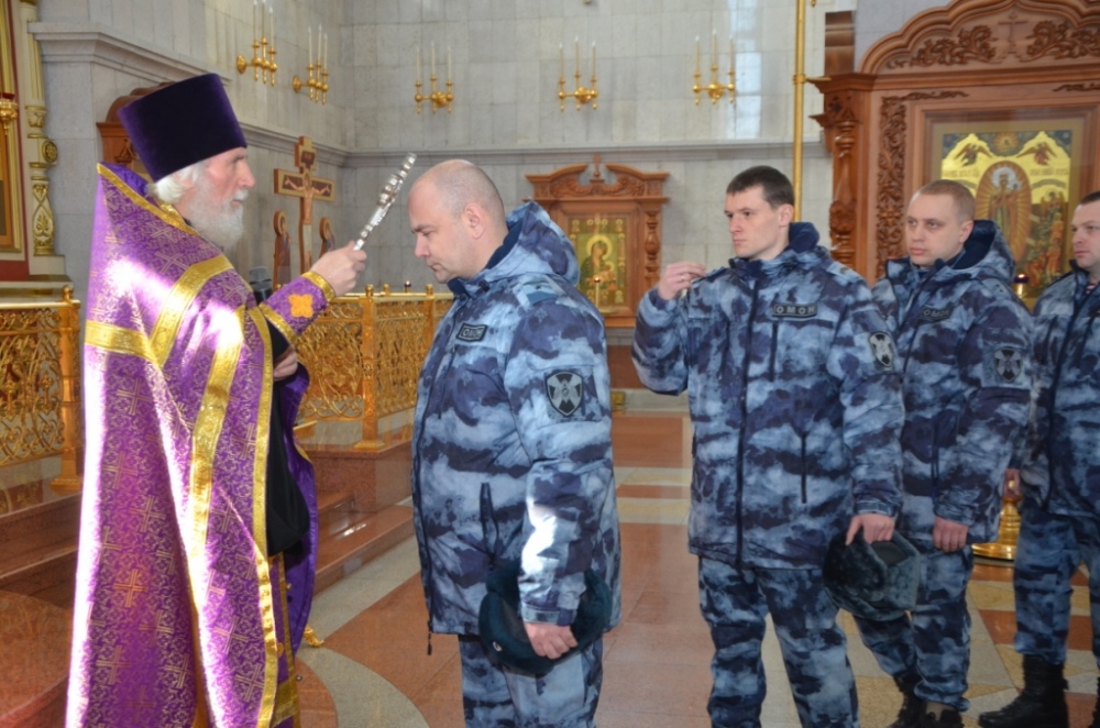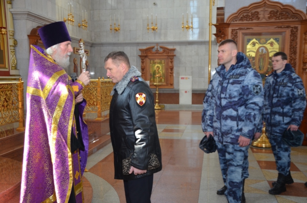 В кафедральном соборе Хабаровска совершили молебен в День войск национальной гвардии России 27 марта 2019 г.