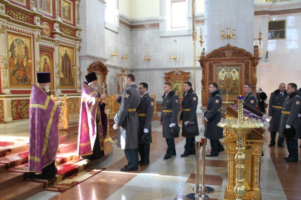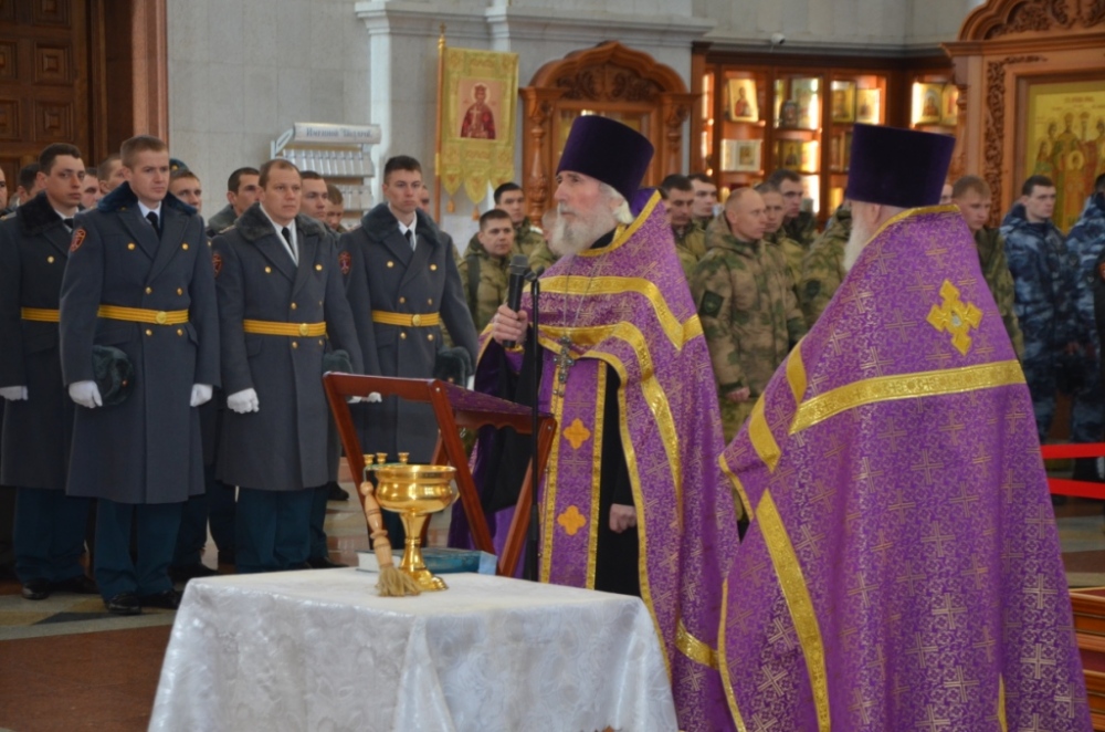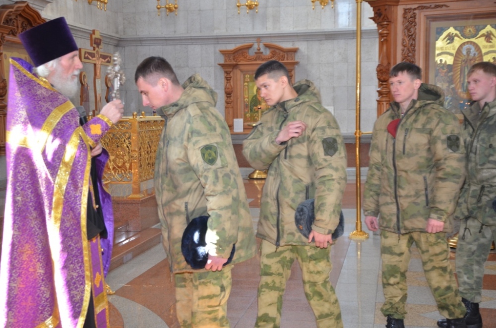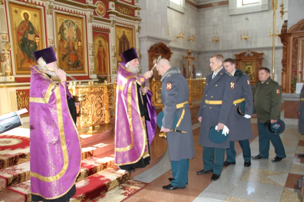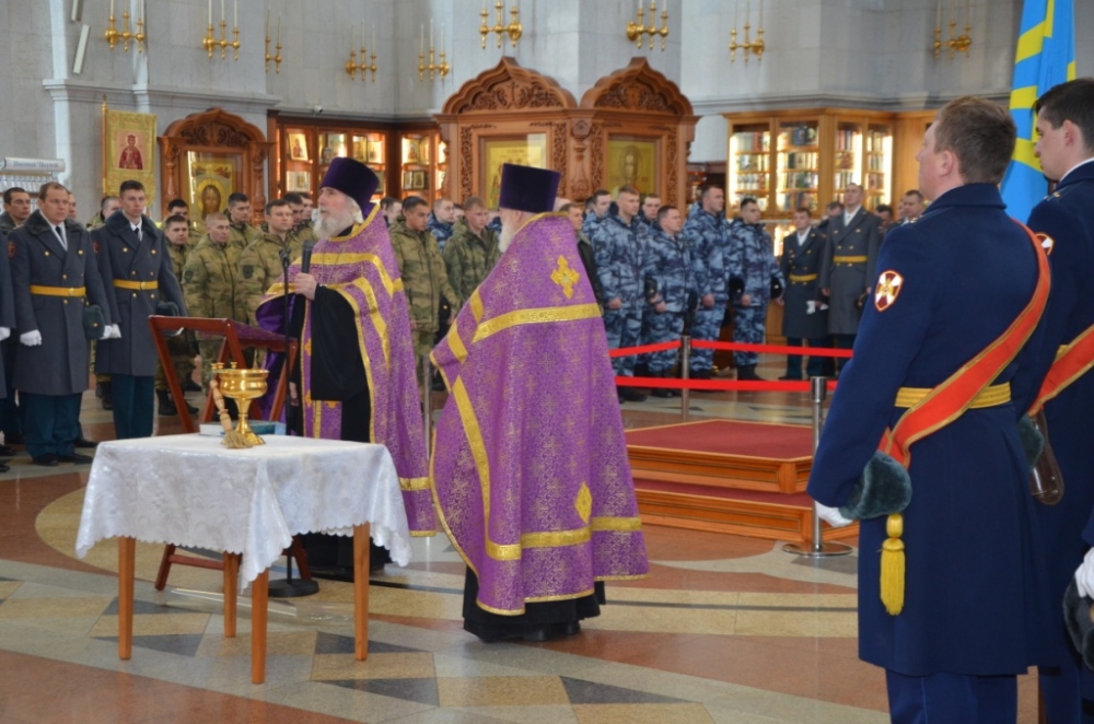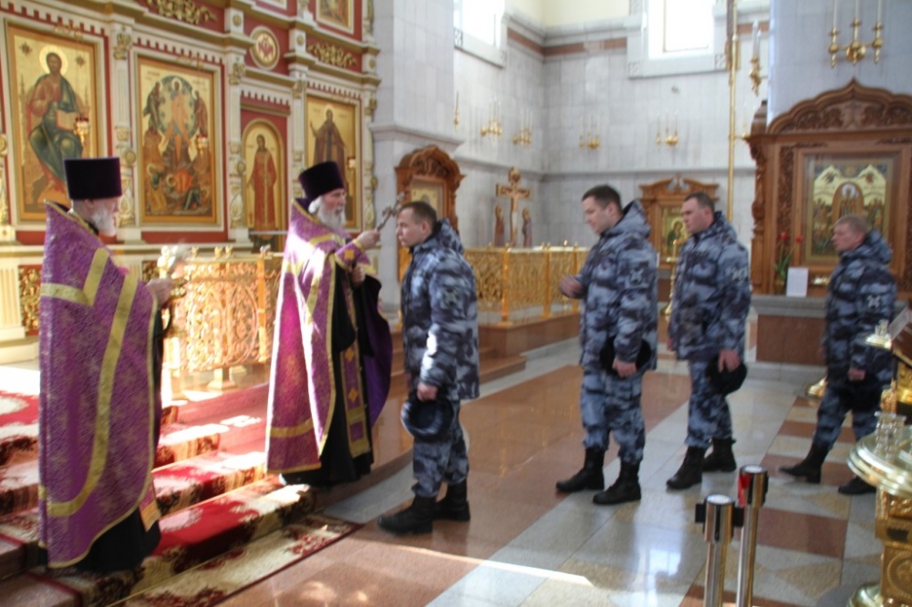 В кафедральном соборе Хабаровска совершили молебен в День войск национальной гвардии России 27 марта 2019 г.