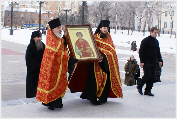 Прибытие в Хабаровск иконы с частицей мощей святого великомученика Пантелеимона (12 февраля 2009 года)