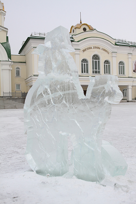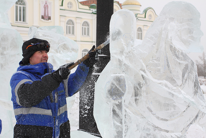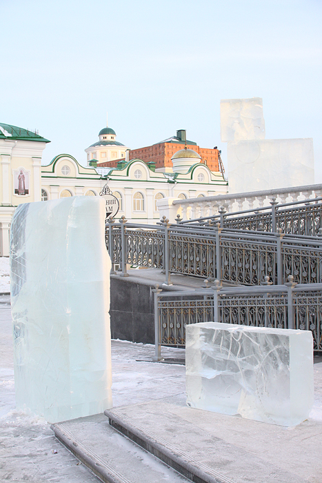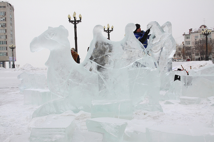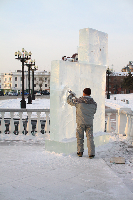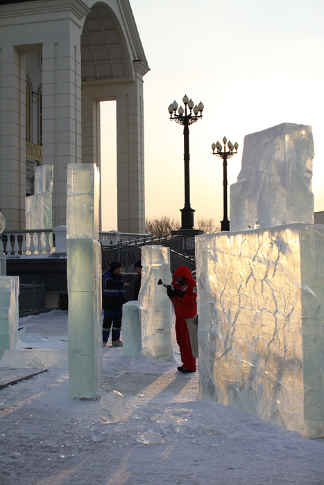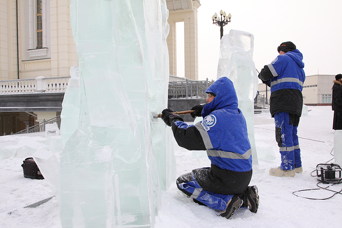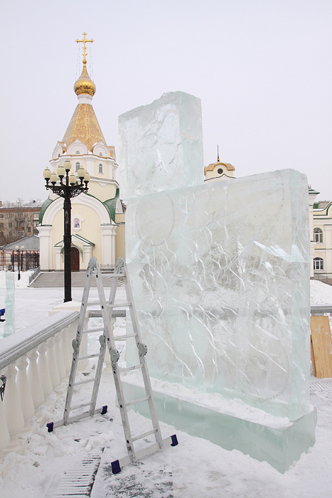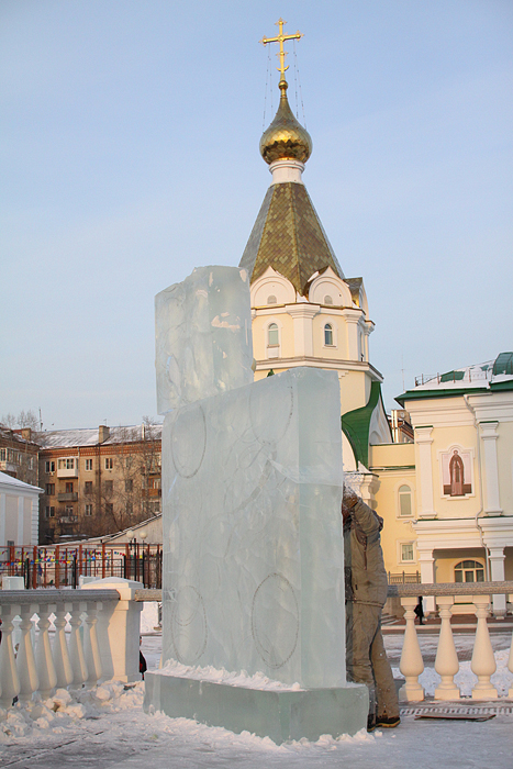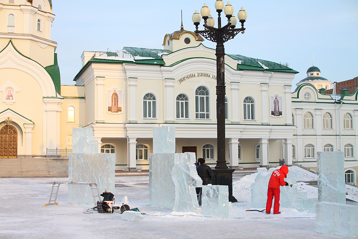 Создание ледовой композиции перед Спасо-Преображенским кафедральным собором, день первый и второй. 21-22 декабря 2011 г.
